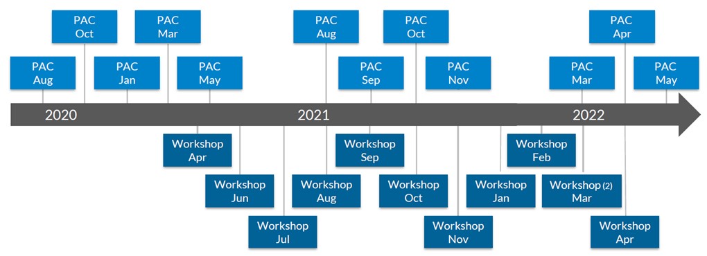 그림 3. MISO의 LRTP Tranche 1 송전 설비 계획을 위한 시간대별 워크샵과 PAC (출처: MISO, “LRTP Tranche 1 Portfolio Detailed Business Case”, June 25, 2022)